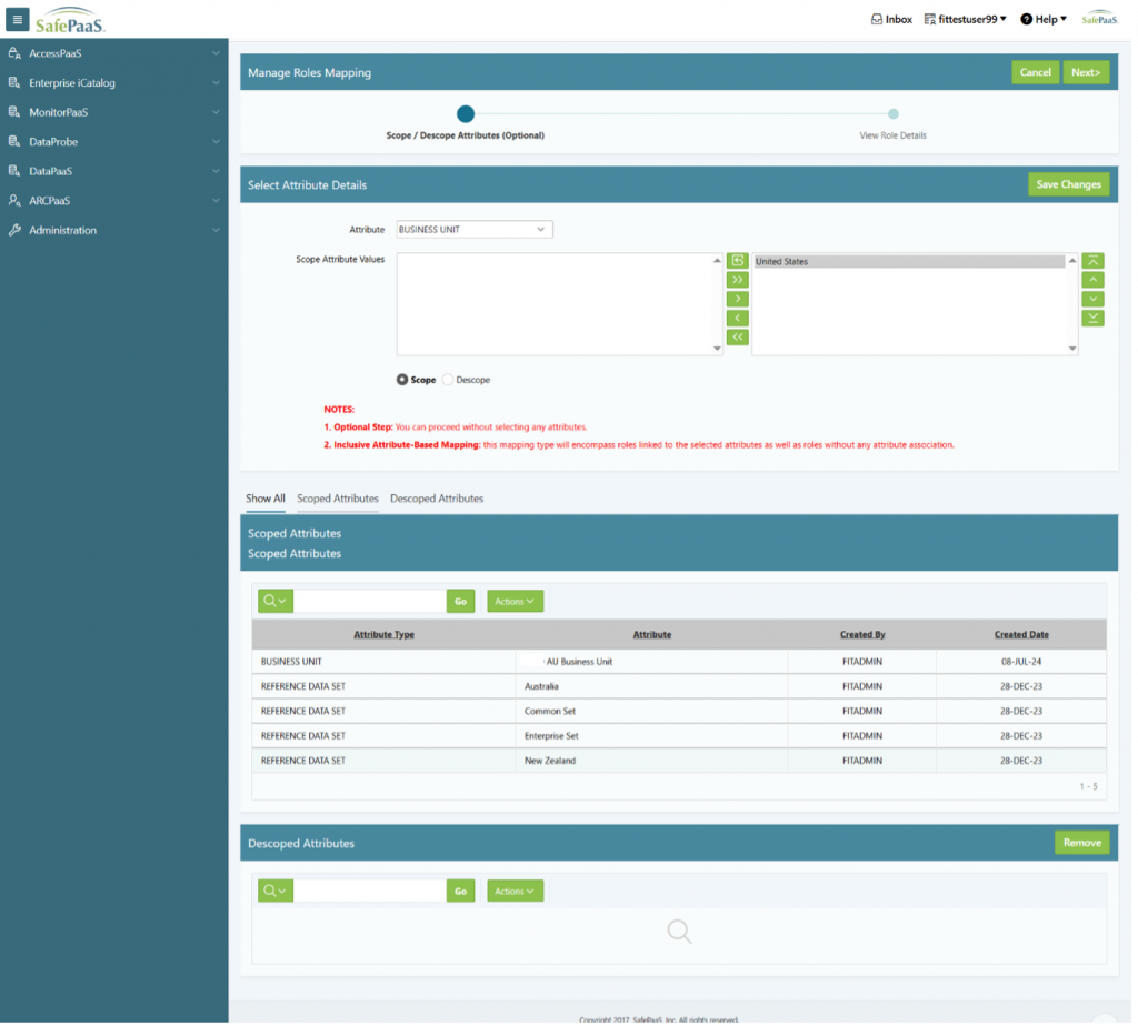 - Fallback Logic: This is an optional step. If an administrator does not scope any specific roles, the system defaults to the current behaviour and includes all roles and attributes for the review.