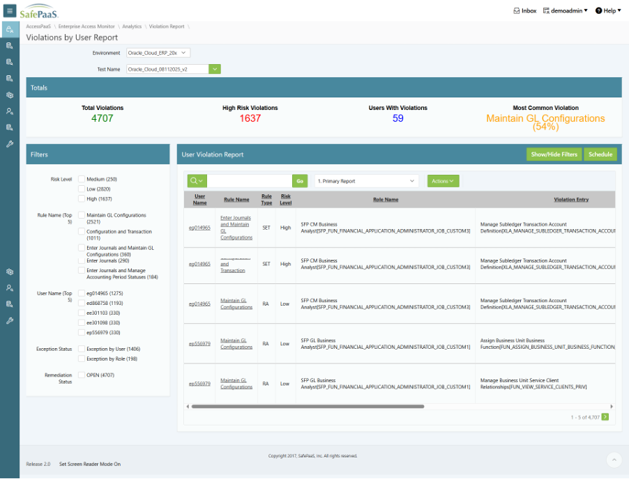By adopting SafePaaS, the company automated SoD analysis, simplified rule management, and gained real-time visibility across Oracle financial and operational roles. Compliance and IT teams can now conduct faster access reviews, generate clearer audit reports, and proactively remediate risks.